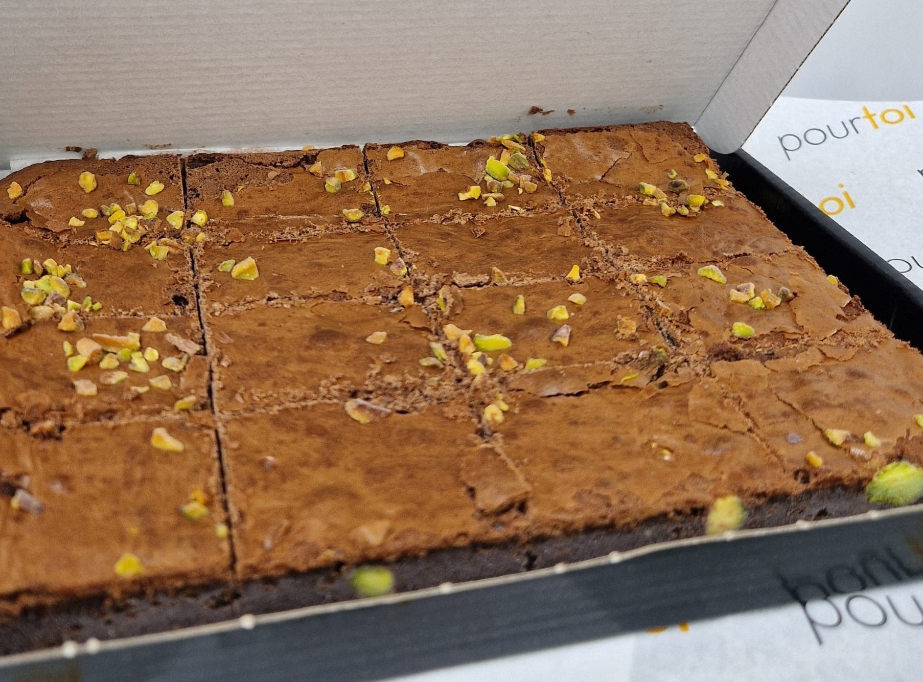 For brownie mavens who like their bites with a little more crunch, our Pistachio Brownie combines all the rich chocolate delight of our Double Choc Brownies and throwing in freshly roasted Pistachio pieces. You could warm these brownies in the oven for a few minutes and enjoy with Vanilla Ice Cream!