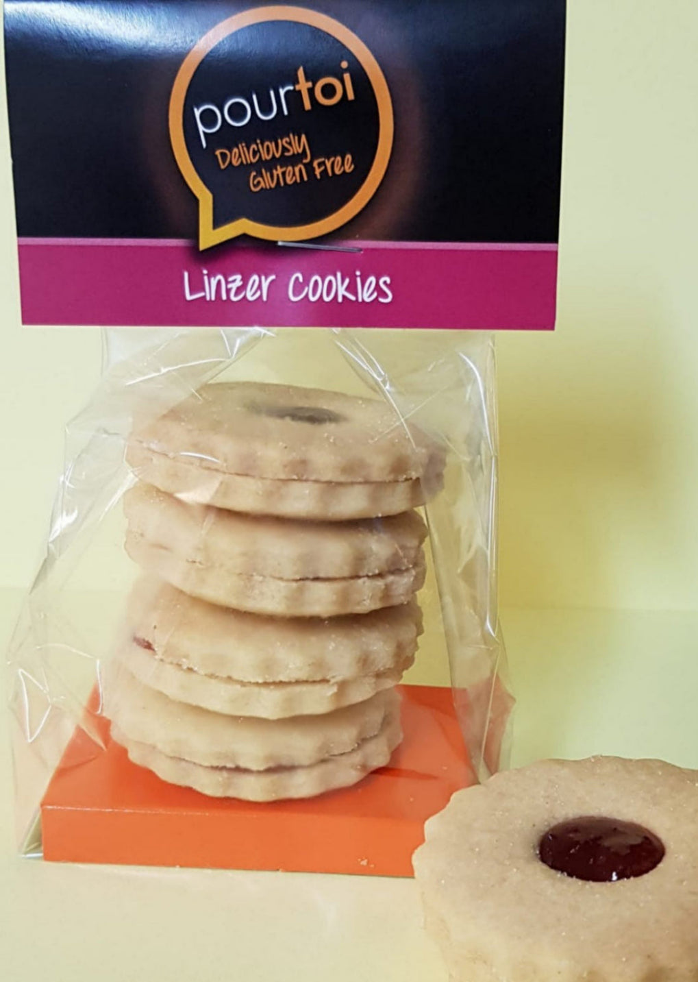 A yummy bag of 4 Linzer Cookies., Jammy Dodgers to some people. A round crisp pastry biscuit filled with red fruity raspberry jam, How can you resist?